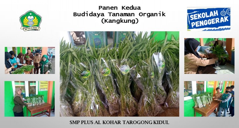Proses panen kangkung dimulai sejak pagi lebih kurang pukul 07.15. Memanen kangkung sendiri dilakukan dengan cara mencabut seluruh bagian kangkung termasuk akarnya dari media tanam yang menggunakan polybag. Karena ini merupakan panen terakhir di polybag tersebut, maka setelah kangkung dicabut dengan akar-akarnya, polybag dibersihkan dan kembali diisi tanah yang sudah diolah dengan sekam, kapur dan petroganik. Polybag tersebut kembali ditanam benih kangkung, yang jika tidak aral melintang, hasil panen selanjutnya akan dipamerkan pada Bazar saat pelaksanaan perpisahan kelas 9 pada bulan Juni 2022 mendatang.