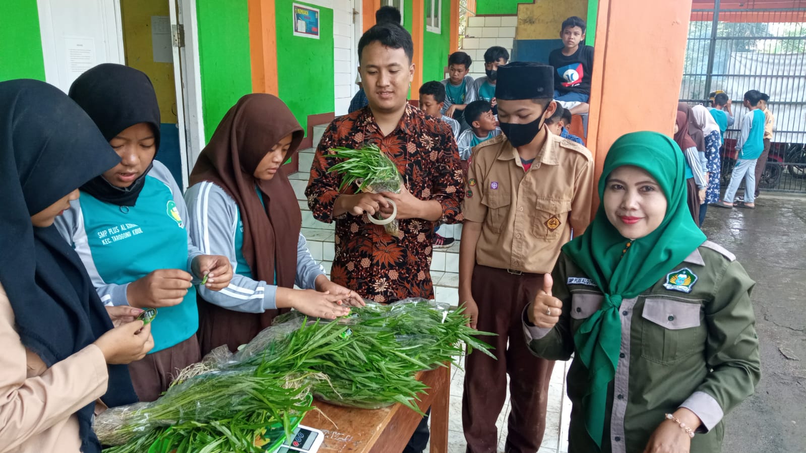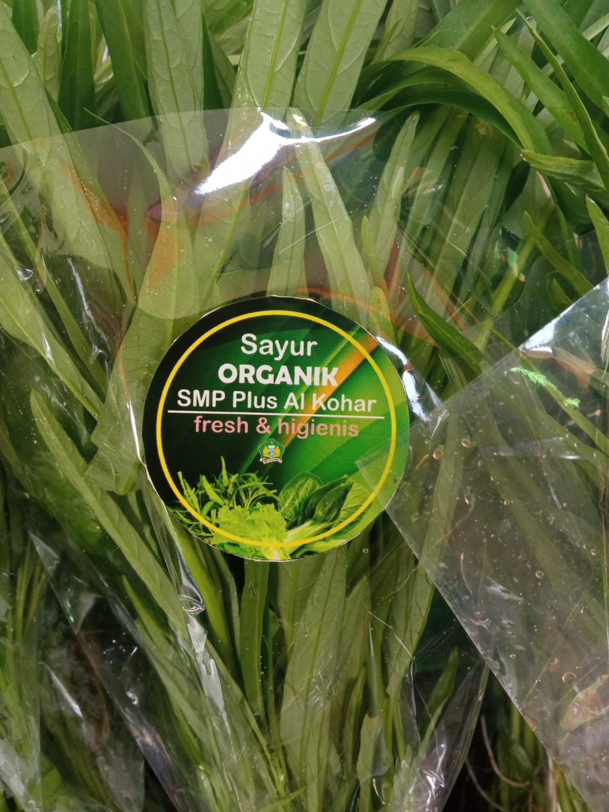 Kangkung yang sudah dikemas kemudian diberi label dengan nama Sayur ORGANIK SMP Plus Al Kohar fresh & higienis. Setelah semua kangkung dikemas dan diberi label, semua peserta didik kemudian dikumpulkan untuk diberikan arahan bagaimana caranya berjualan, agar bisa menarik pembeli, salah satunya adalah menjelaskan kelebihan dari kangkung organik tersebut.