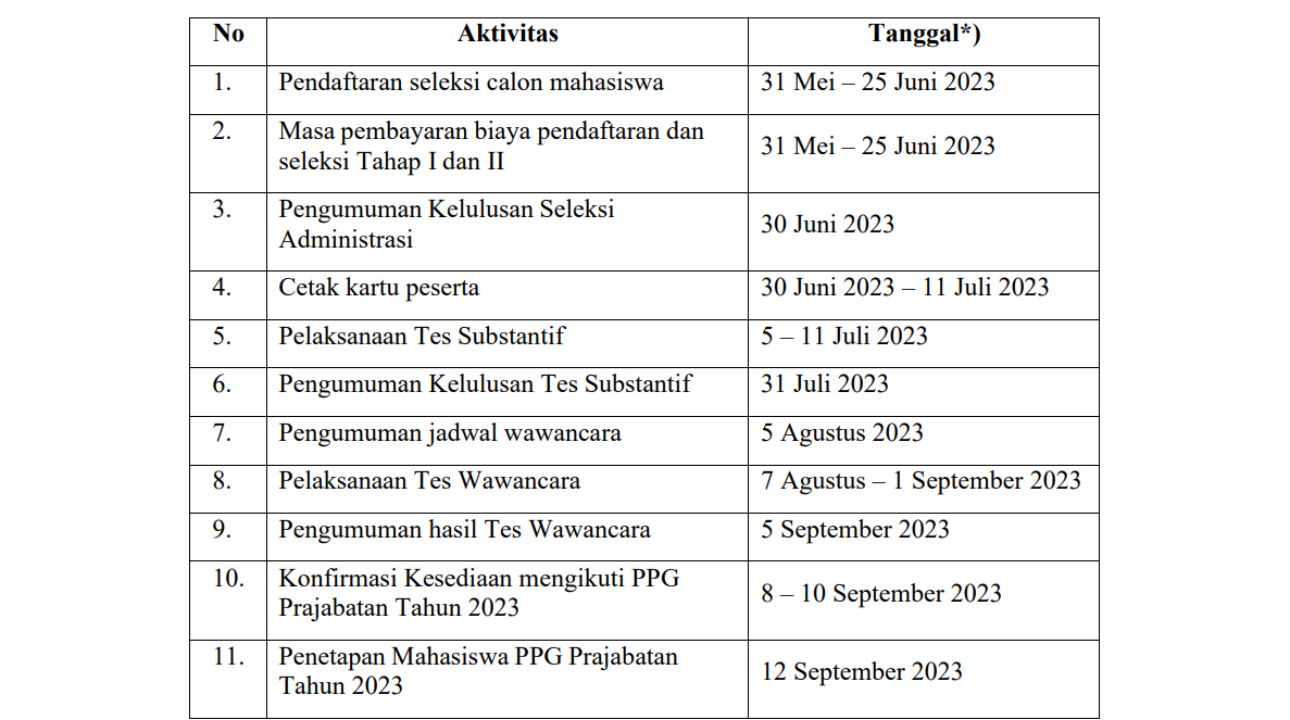 Demikian informasi terkait Pengumuman Seleksi Calon Mahasiswa Program Pendidikan Profesi Guru (PPG) Prajabatan Tahun 2023, yang dapat kami sampaikan, semoga bermanfaat.