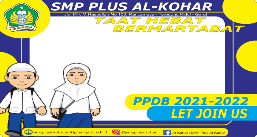 Penerimaan Peserta Didik Baru SMP Plus Al-Kohar Tarogong Kidul Tahun Ajaran 2021/2022 sudah dimulai. Bagi adik-adik yang saat ini duduk di kelas 6, Ayo Bergabung Bersama Kami. Sebagai langkah awal, mari beri dukungan dengan upload foto terbaikmu di medsos dengan mengklik tautan https://www.twibbonize.com/ppdbsmpalkohar2021, unggah foto terbaikmu dan unduh kembali, untuk selanjutnya di unggah di media sosial masing-masing.