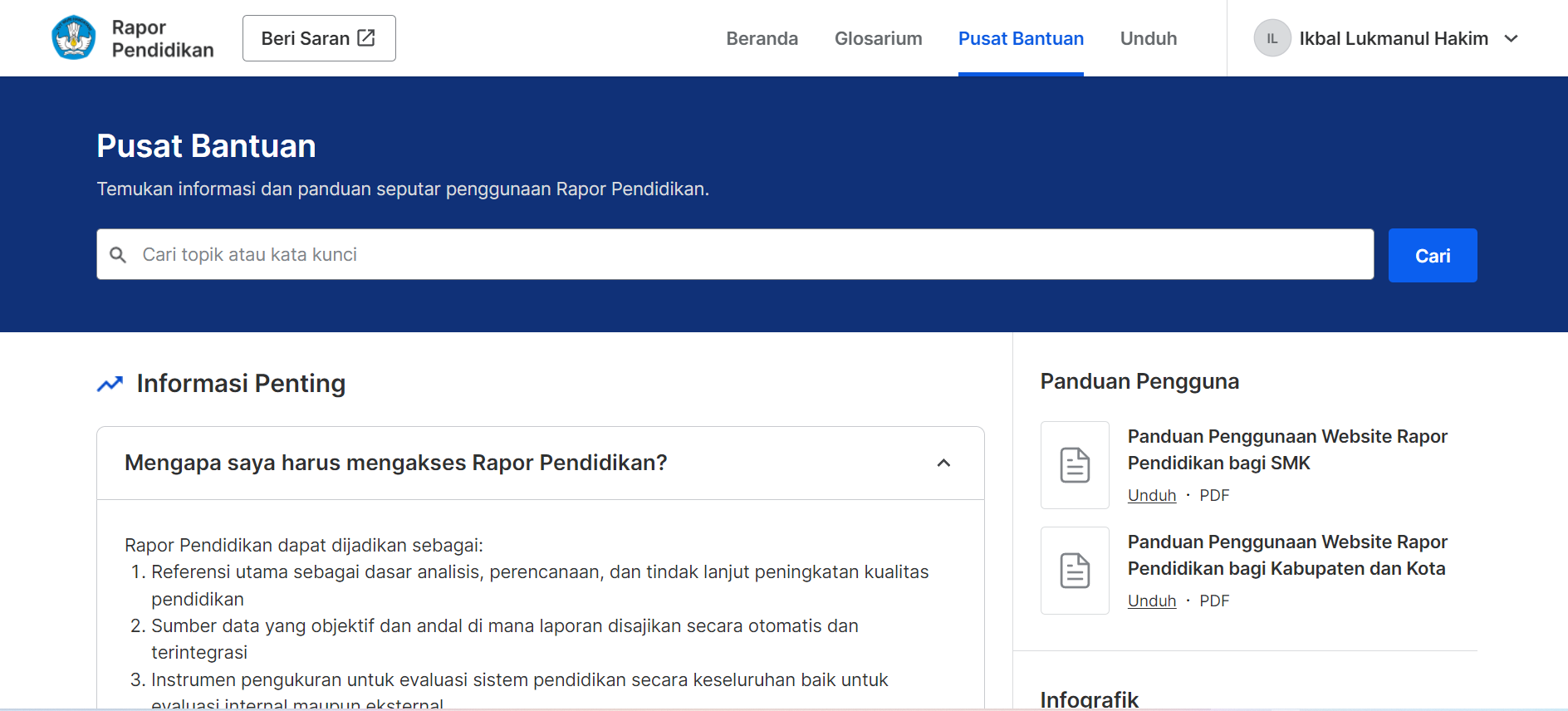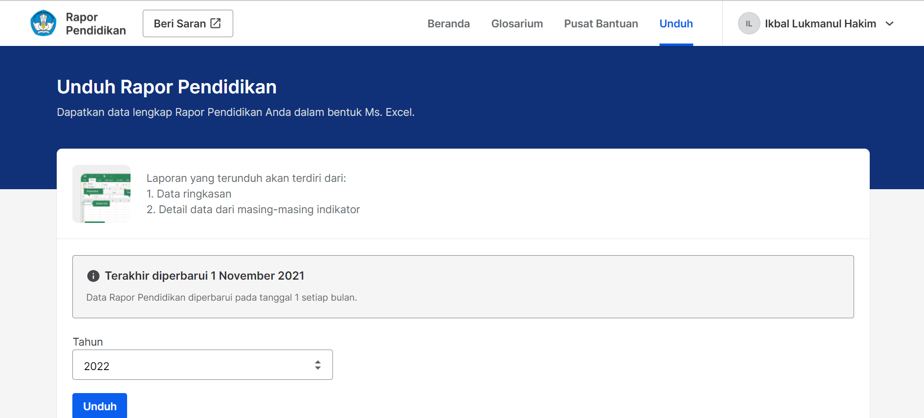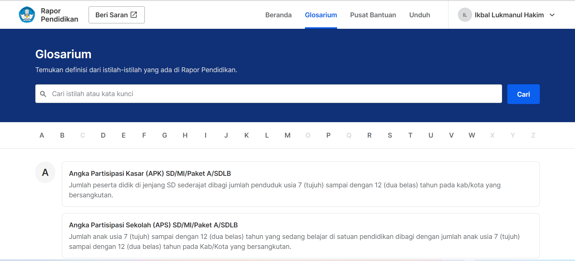 7. Menu lain yang ada di Rapor Pendidikan diantaranya Glosarium, Pusat Bantuan dan Unduh.