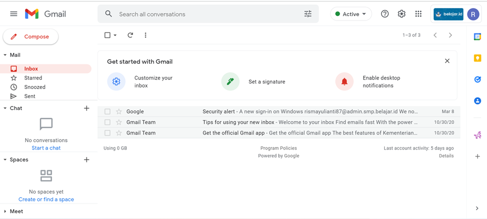 6. Jika ternyata di browser/PC/Laptop tersebut banyak akun, silahkan pilih akun yang berakhiran @........belajar.id;