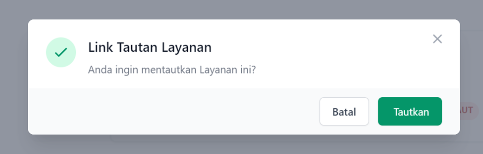 5. Selanjutnya klik tombol TAUTKAN yang berwarna hijau. Jika ada notifikasi Anda ingin mentautkan Layanan ini? Klik tombol Tautkan;